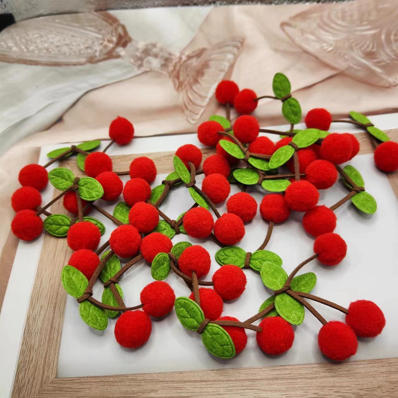 レッドチェリーの葉立体高弾性毛玉レッドチェリーポリエステル毛玉手作り diy ジュエリーアクセサリーヘアピンブローチ