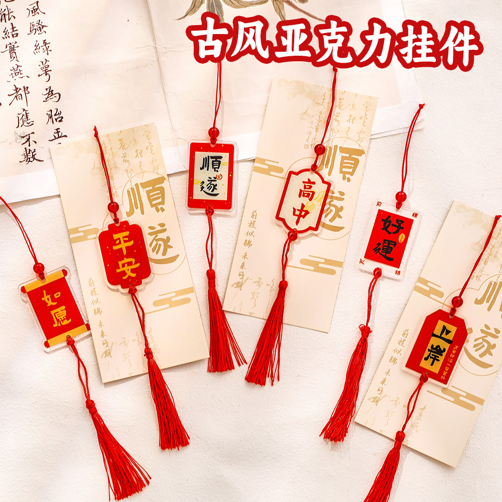 クリエイティブな古風文字アクリルペンダント、学生バッグ装飾、学生文房具、賞品、ギフトペンダント