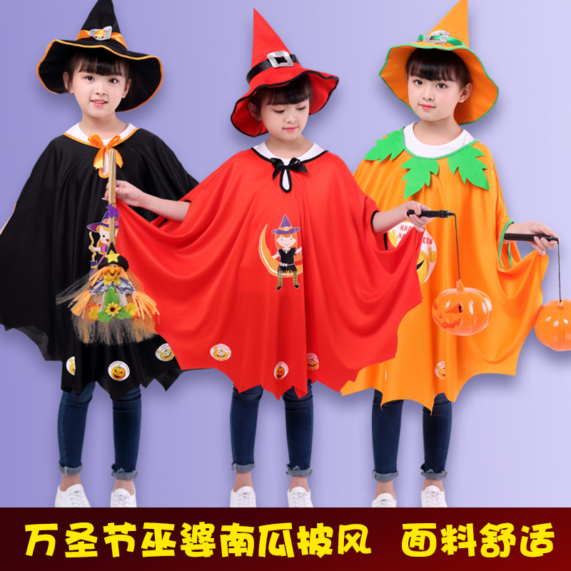 ハロウィン子供用魔女カボチャマントヨーロッパとアメリカの空飛ぶほうき魔女マントパーティードレスアップ
