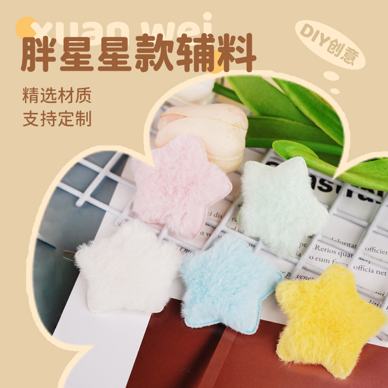1.3cm植毛布星飾りdiy五角星髪飾り装飾材料服装補助材料部品