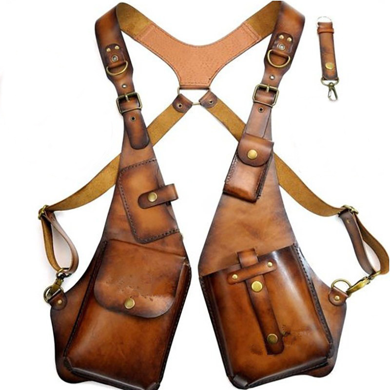 新しいハロウィンコスプレレザー財布中世スチームパンクレトロストラップ脇の下バックパック