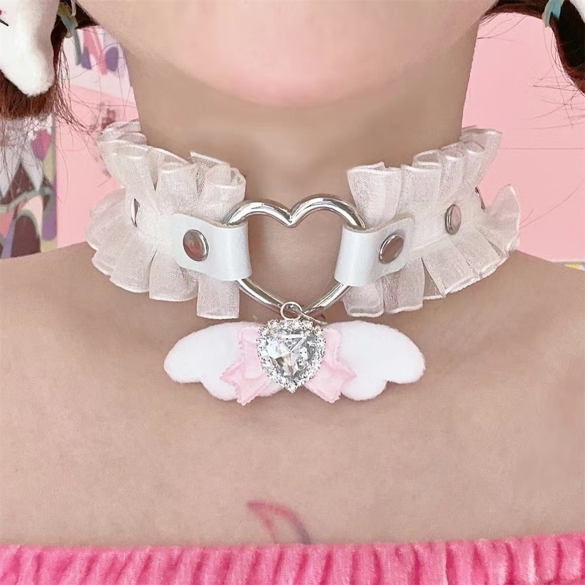 愛の首輪の女性の首は純欲風のメイドのセクシーなネックレスの革のパンクの柔らかい妹の黒色のpu皮の桃の心の鎖骨を持ちます。