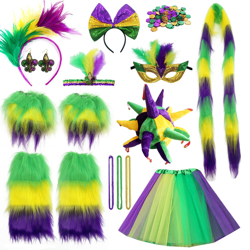 Mardi Grasカーニバルブラジル黄緑紫脚カバー帽子カチューシャマスクセットアイルランド舞踏会衣装