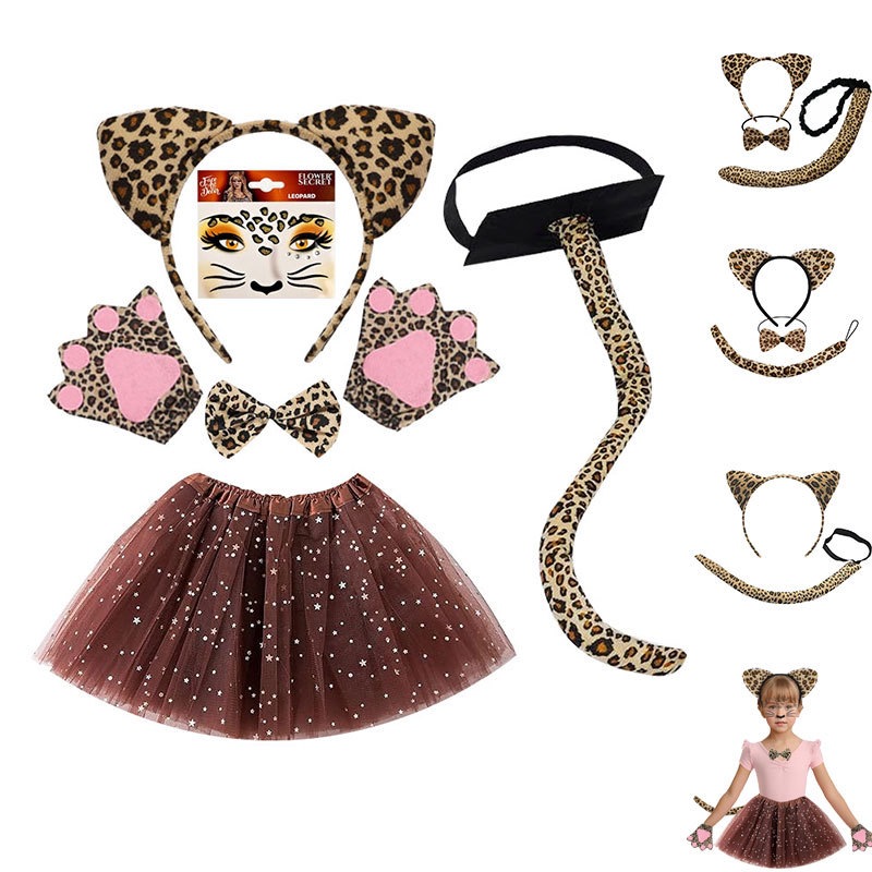 2025 新しいヒョウ柄ヒョウ耳尻尾クロスボーダーサプライ COS 衣装ハロウィン子供と大人