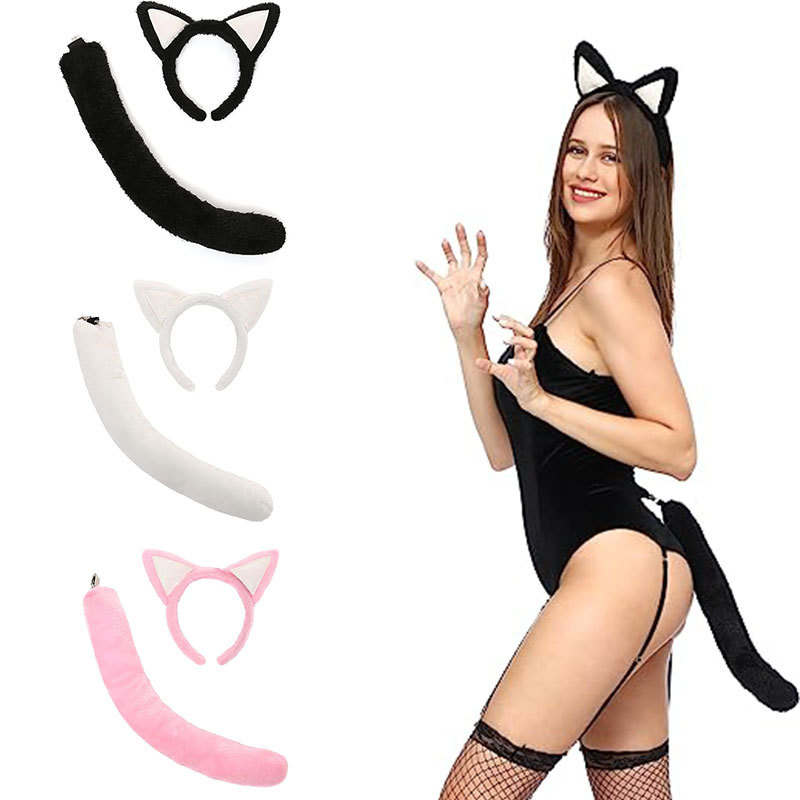 クロスボーダー人工毛皮猫の耳のカチューシャのしっぽのハロウィンのキャラクターは大人の子供の現物を演じます。