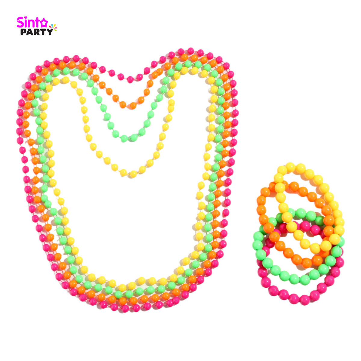 国境を越えて欧米の80年代の舞踏会パーティーの服装の部品のネオンの蛍光色のネックレスのブレスレットのセットを売ります。