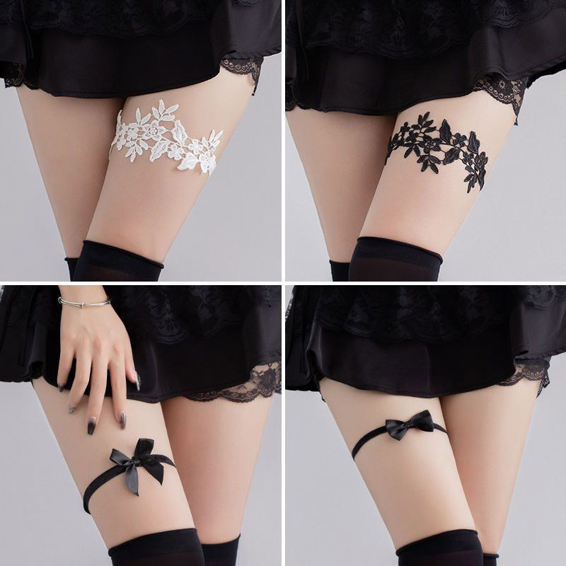 小衆甜妹純欲手作り蝶結びロリータ少女レース太もも弾性靴下ストラップ脚リングセクシー