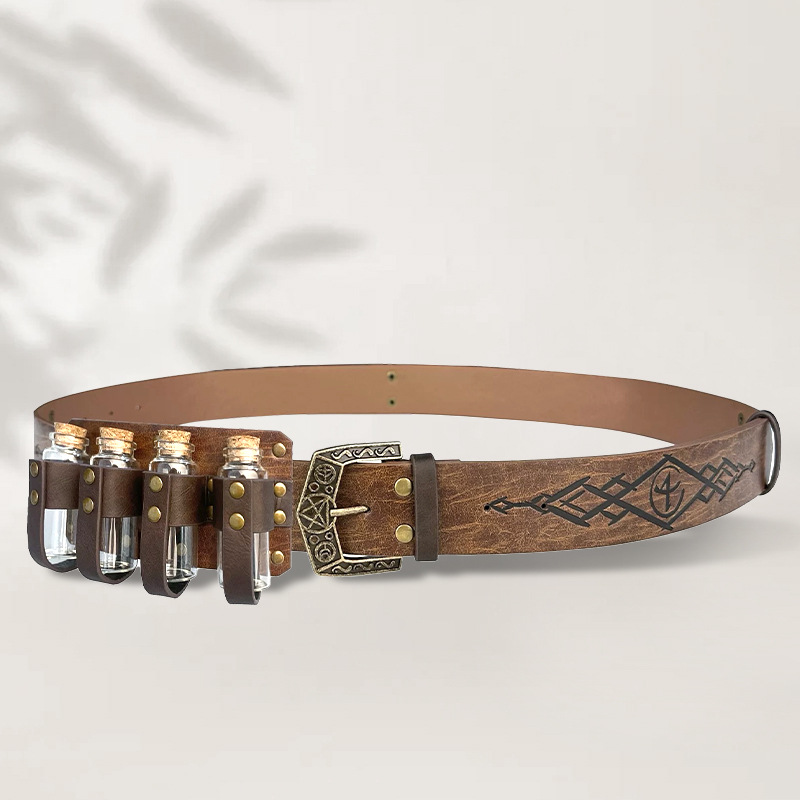中世の錬金術 4 ボトル ベルト 北欧 バイキング スタイル レトロ コスプレ 小道具 ライトブラウン ブラック