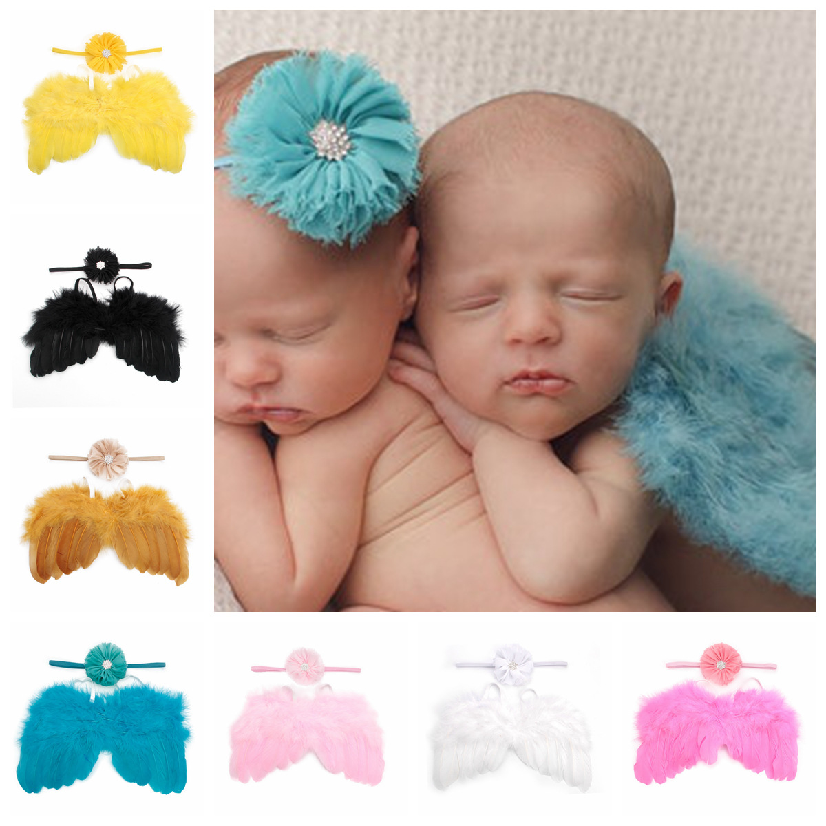 羽の天使の翼のシフォンの毛の花のヘアバンドのセットのメーカーの卸売りの直接販売の幼児の撮影の装飾