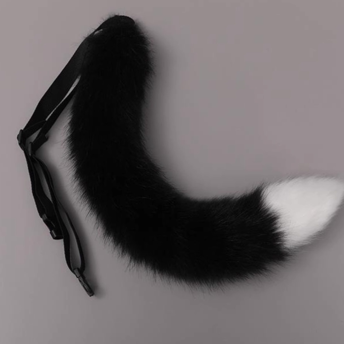 手作アニメcos道具白黒灰色シミュレーション獣尾lolitaアクセサリー狼キツネ犬のしっぽ