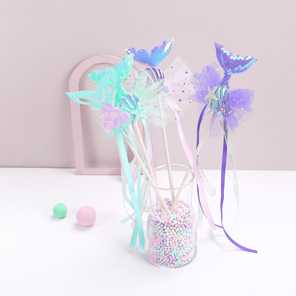 子供のまぶしい魔法の棒の夢幻の網の糸の杖の魚の尾の流蘇のアンドロメダの棒の海洋のテーマのパーティー用品