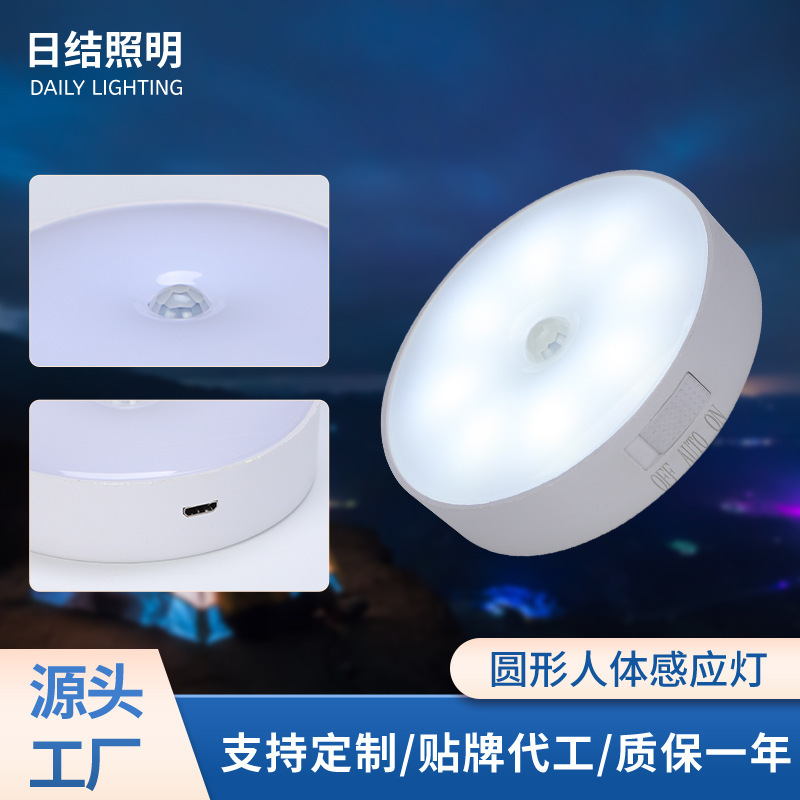 白色光人体センサーナイトライト寝室ベッドヘッドスマートLEDセンサーライト屋外防水PC充電式ナイトライト