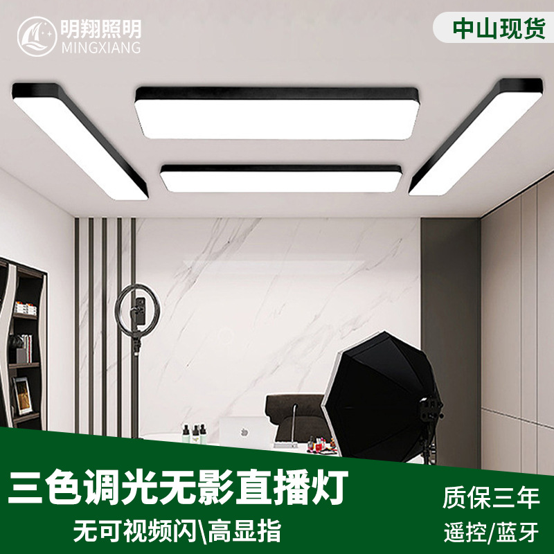 LEDライブストリーミングトップライト、ビデオフラッシュなし、3色調光リモコン、ロングストリップシャンデリア、ライブブロードキャストルーム専用無影ライト