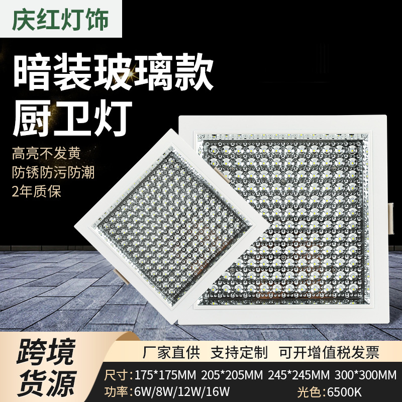 隠蔽型ガラス製キッチン・バスルームライト 300*300 フラットパネルライト 天井一体型 浴室・キッチン用パネルライト キッチン・バスルームライト