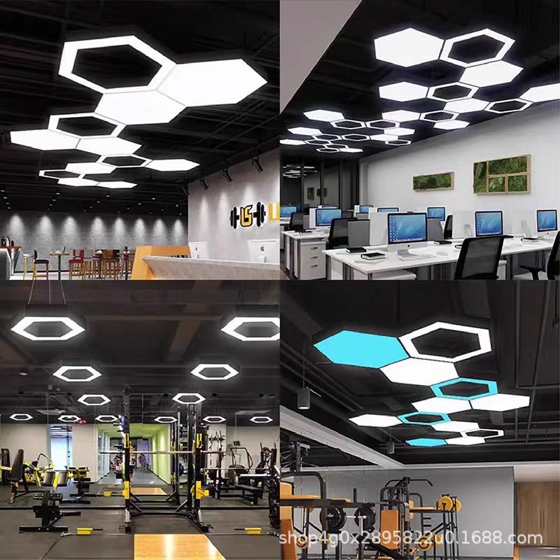 LED六角形ライト、クリエイティブな特殊形状オフィスライト、ジム、ダンススタジオ、六角形デザインライト、菱形型作業灯