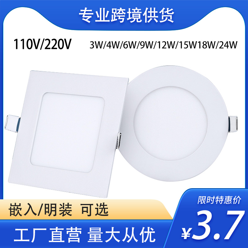1cmパネルライト超薄型埋め込み式角型円形ダウンライトキッチン足瓦クロスボーダー外国貿易卸売ledフラットライト