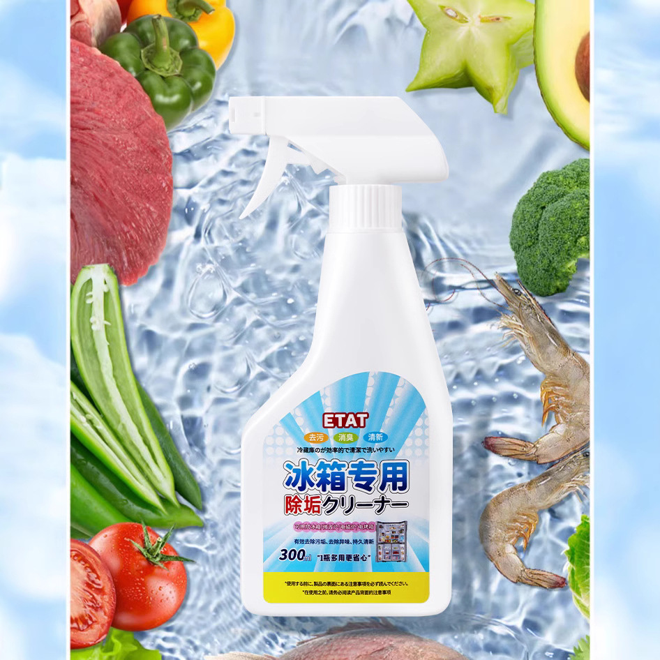 冷蔵庫の消臭洗浄剤、汚れやカビを除去する専用洗浄剤、消臭・臭い除去、家庭用多機能除菌剤