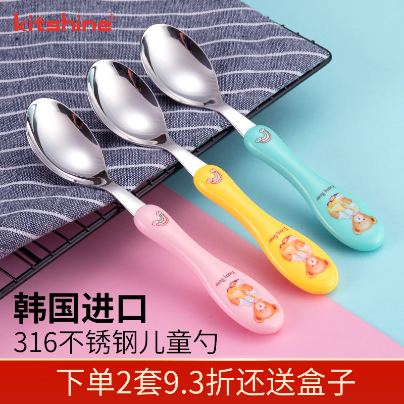 韓国輸入子供用スプーン 316 ステンレス鋼学生ポータブルスプーン 304 食品グレード給餌スプーン漫画ベビースプーン