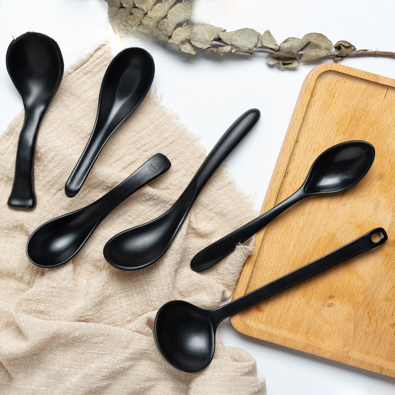 メラミンスプーン商業ケータリングスパイシースープスプーン黒ロングハンドルスプーンラーメンプラスチックスプーン食器