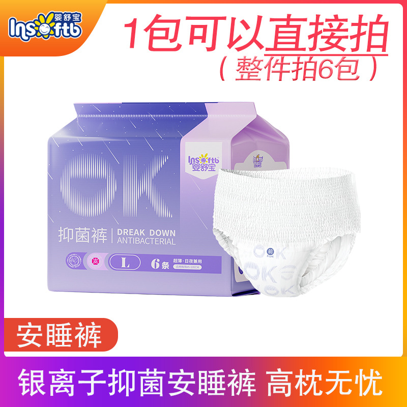 インシュバオ 抗菌安眠パンツ 6枚入り 医療グレード生理用ナプキン 夜用安心 産後専用 生理漏れ防止パンツタイプ