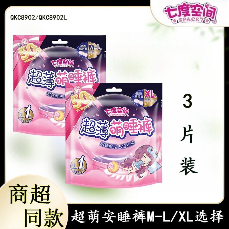 セブンディメンションス かわいいパジャマ ナイトパンツ 生理用ナプキン 2+1枚組 QKC8902 伸縮性安全パンツタイプ 夜用