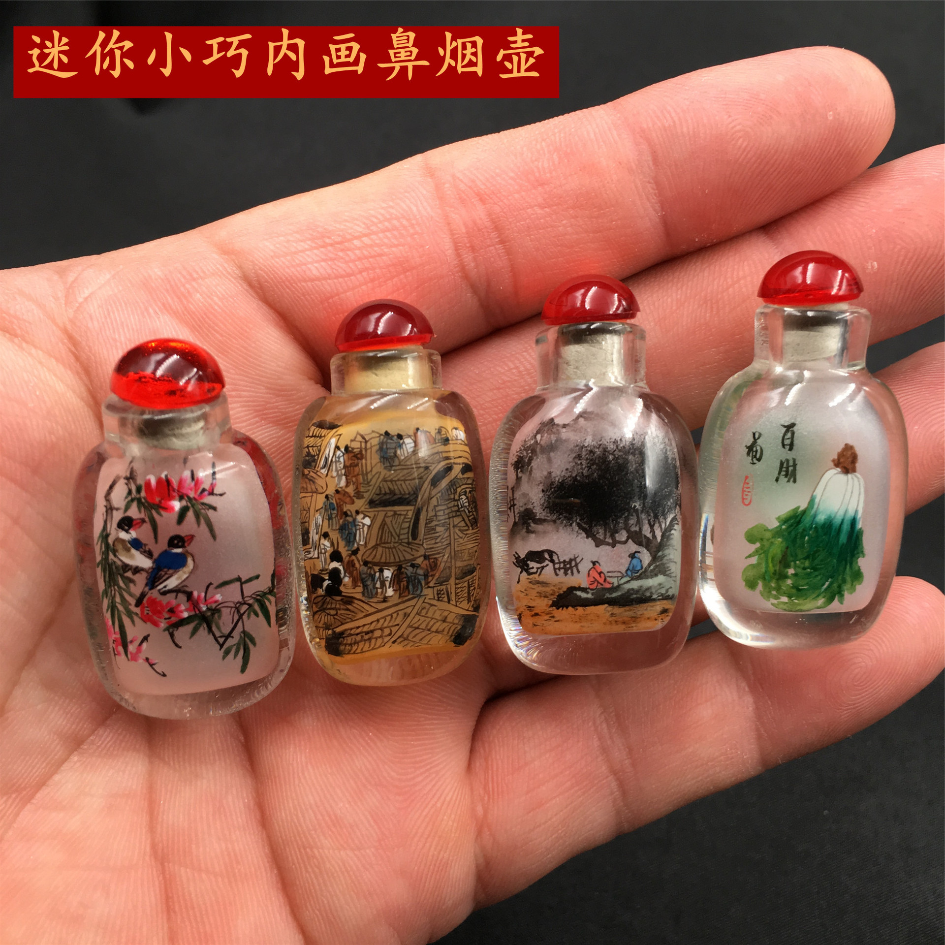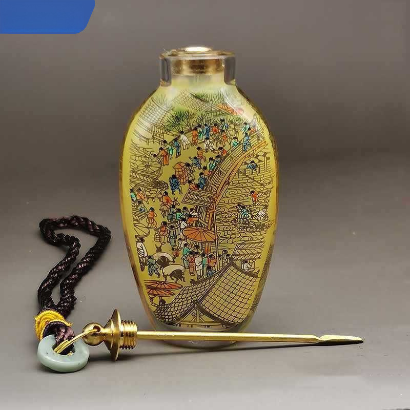 スニフパウダーロングストリップセットポットガラス装飾品清明の川の絵ギフトインナーペイントスニフ瓶手芸送料無料
