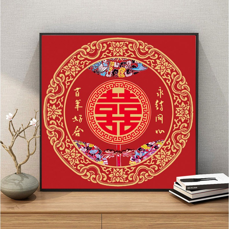 中国風のダブルハピネスウェディングクロスステッチ2024新しい永遠の結婚式と百年の結婚式のお祝い自己刺繍