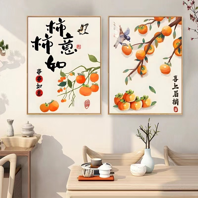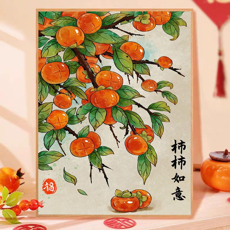 万事如意十字刺繍2024新型刺繍客間レストラン玄関柿万事如意簡単新米刺繍