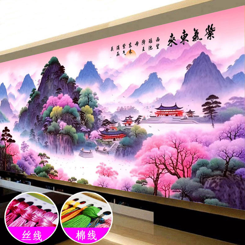 紫気東来十字刺繍2024新作ライン刺繍客間中国風山水画風景中国手作り自己刺繍