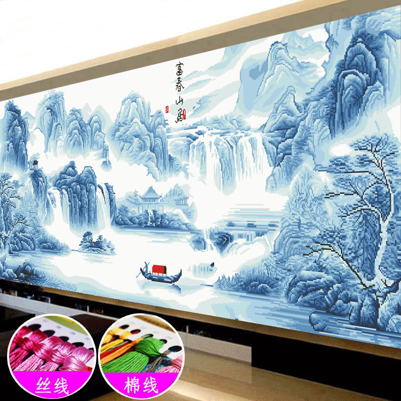 富春山居図十字刺繍2024新型線刺繍客間の大幅な風景山水画は自分で刺繍します。