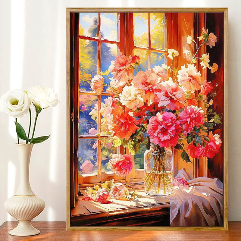 モナリサ十字刺繍2024新型亭玉立刺繍客間寝室レストラン牡丹花瓶植物花卉