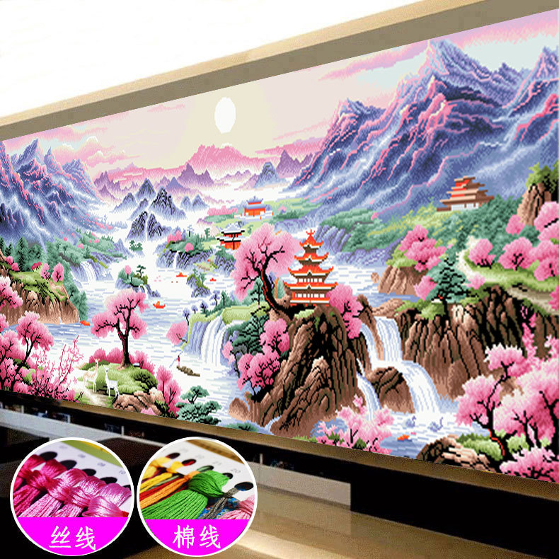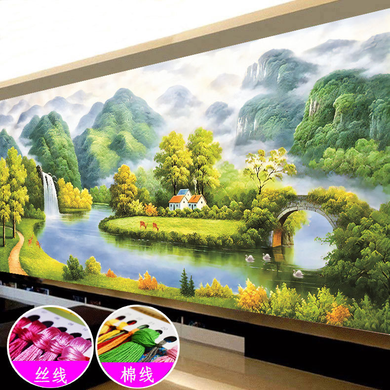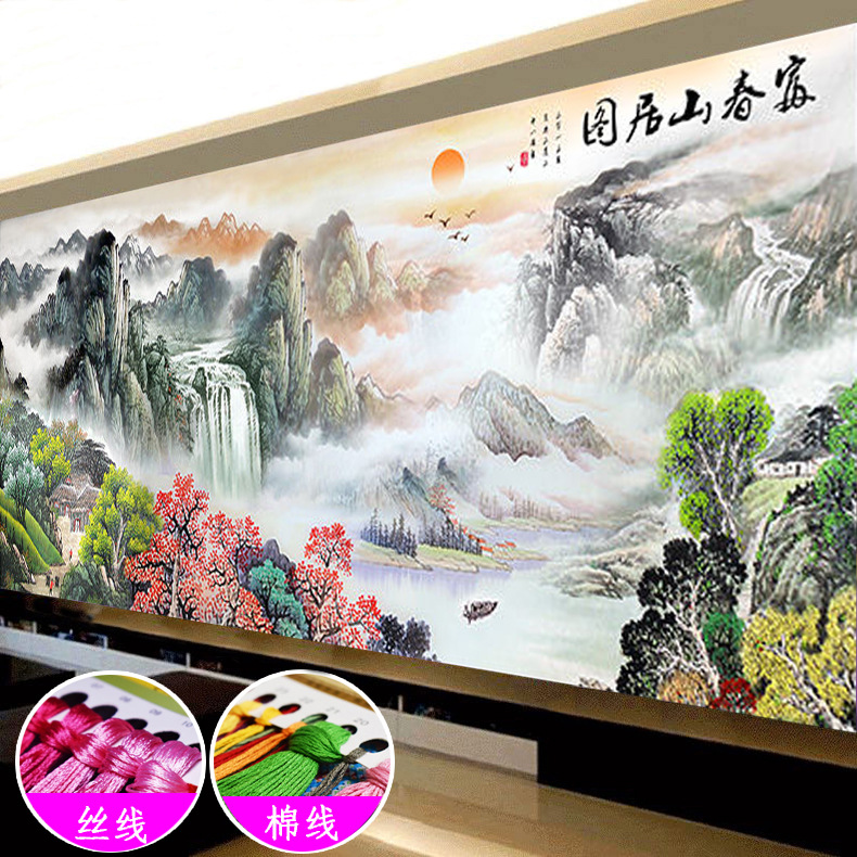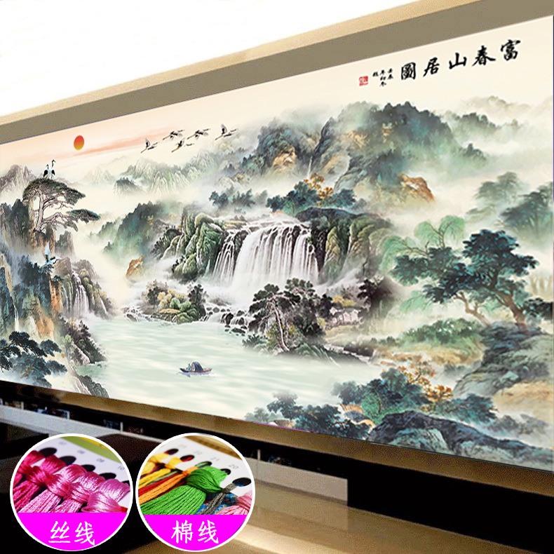 富春山居図十字刺繍2024新型線刺繍客間大幅山水画風景中国式手作業自己刺繍