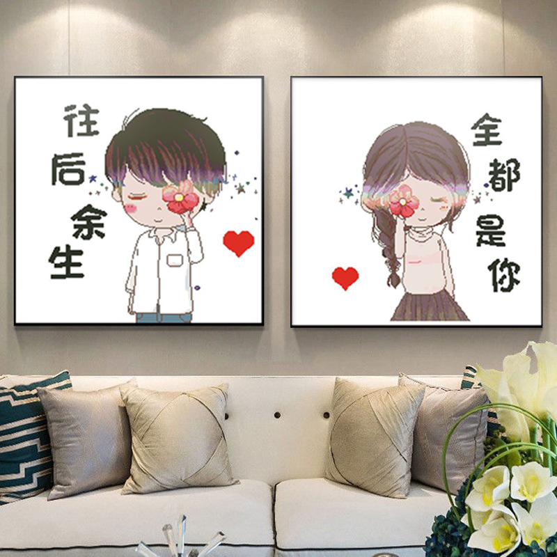カップルの十字刺繍恋愛シリーズは彼氏2023漫画寝室の小物の小幅な置物2022の新しい糸刺繍を送る