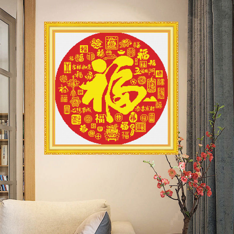 モナリサ十字刺繍五福臨門2023新型簡単線刺繍福字大幅客間特価プレゼント