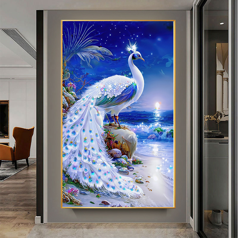 モナリサ十字刺繍2023新作ライン刺繍リビングルームハイエンド画シンプルモダン孔雀牡丹縦版玄関