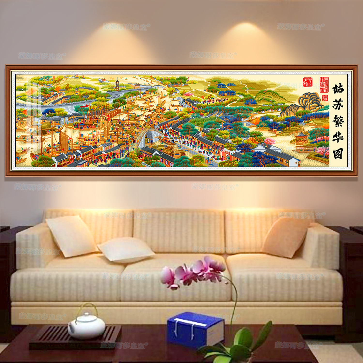 モナリサ皇室十字刺繍姑蘇繁華図古絹布中国風手作り刺繍装飾画綿糸