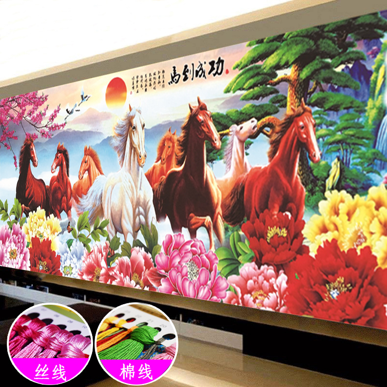 2023新型精密プリント十字刺繍セット非完成品縦版鴻運先頭客間代理