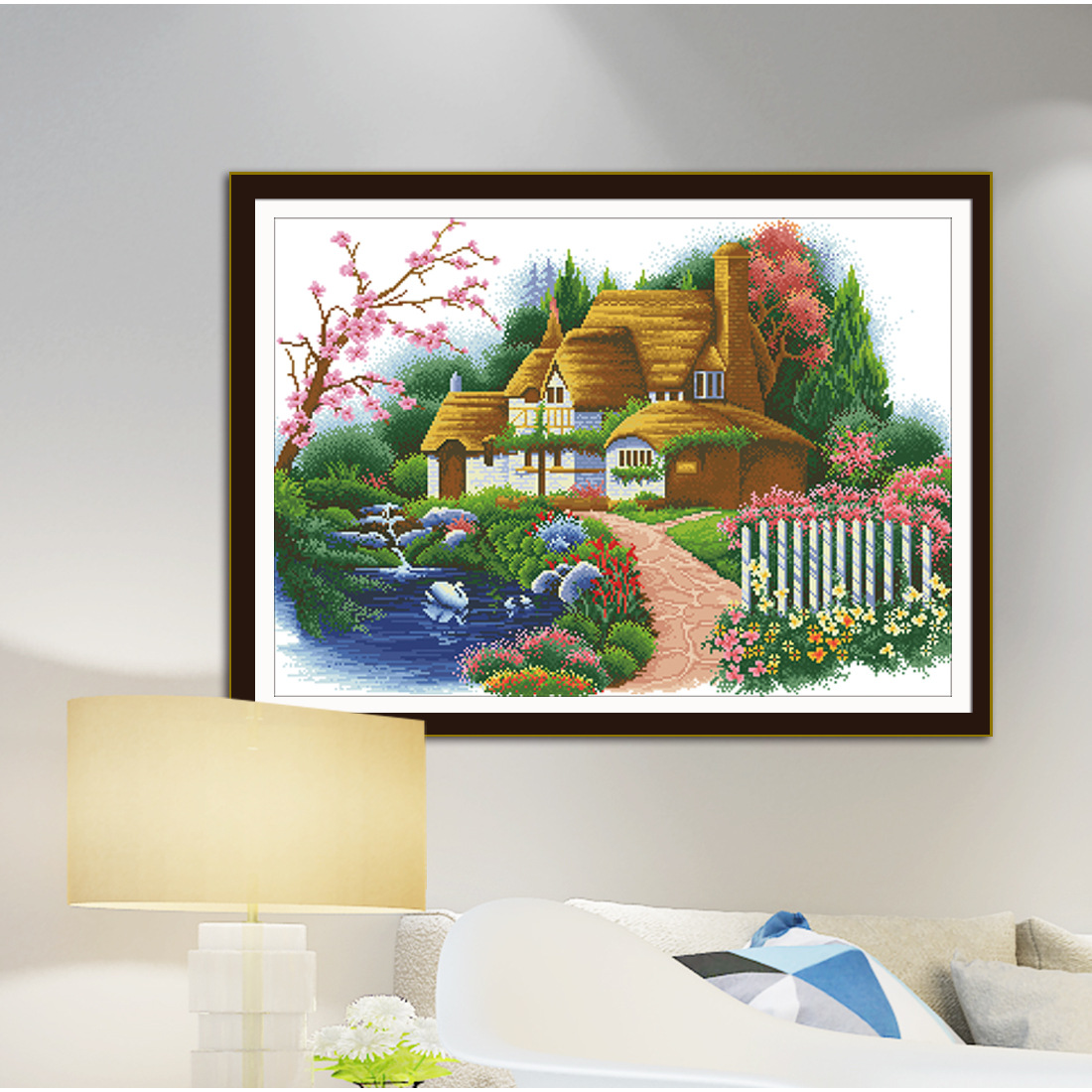 世界外桃源十字刺繍2025新型糸刺繍客間の小幅な寝室の風景は刺繍の小物で自分で刺繍した手作業である