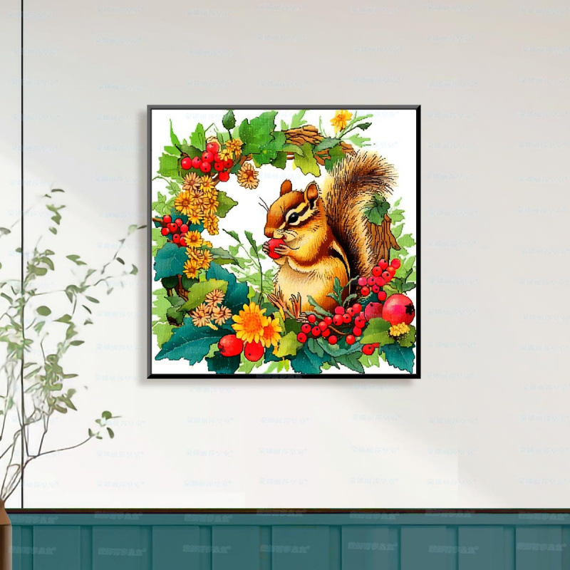 モナリサ皇室十字刺繍果物を食べるリスかわいいアニメ現代シンプルな手作り糸刺繍