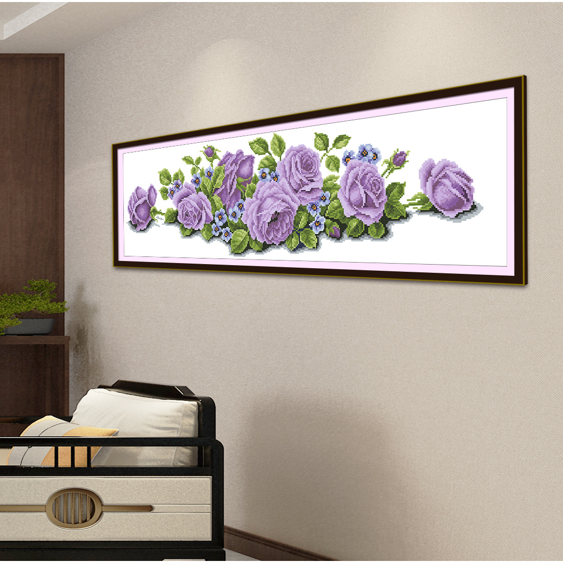 手作りの十字の刺繍の新型の刺繍の花の図の横の版の長い版の紫色のバラの客間の寝室の背景の壁の装飾画