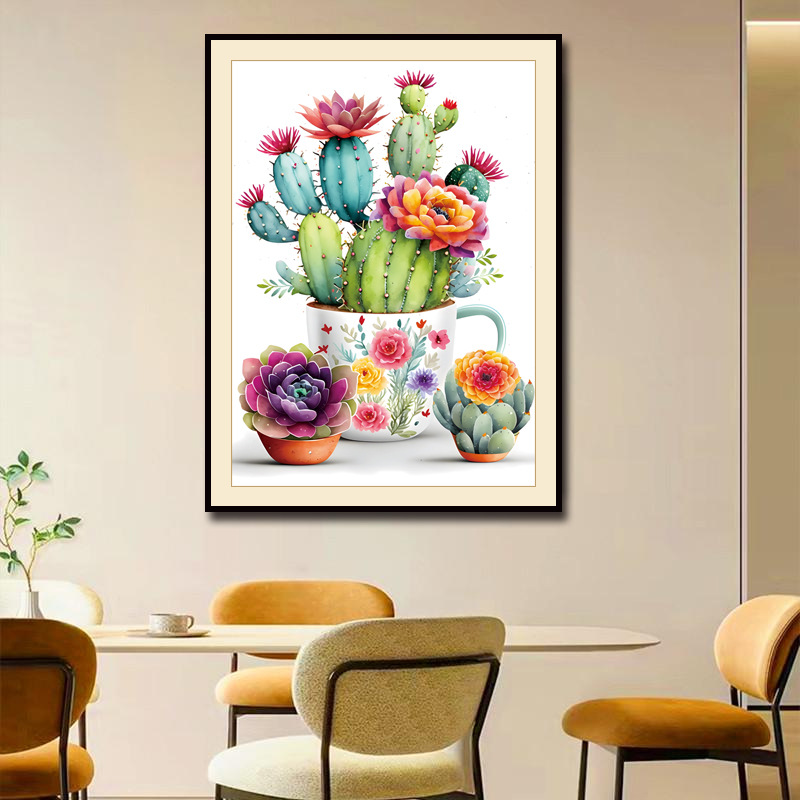 サボテン十字刺繍2025新型刺繍縦版客間レストラン玄関シンプル清新緑植簡単新米モデル