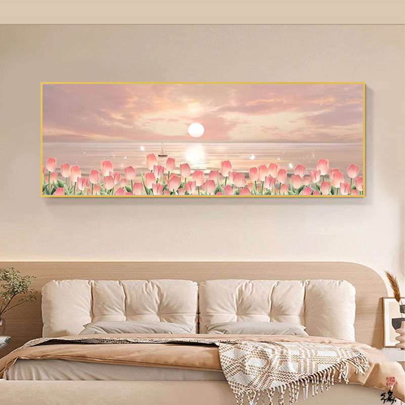 モナリサ皇室十字刺繍海浜の美しい景色現代シンプルな大格寝室客間玄関手作り糸刺繍
