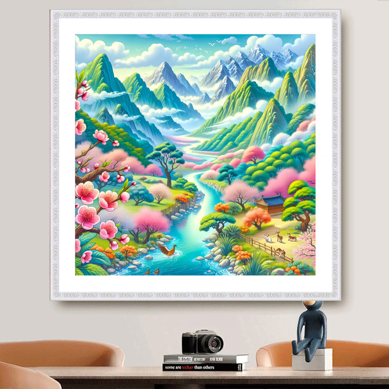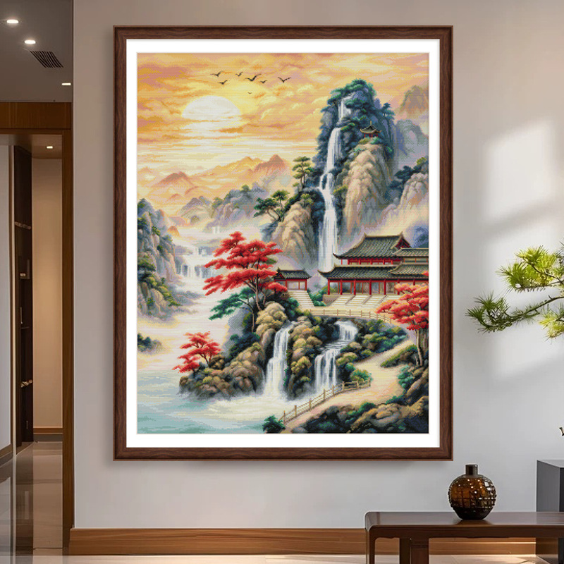流水生財十字刺繍2023年新型糸刺繍客間手刺繍新中国式風景大画聚宝盆