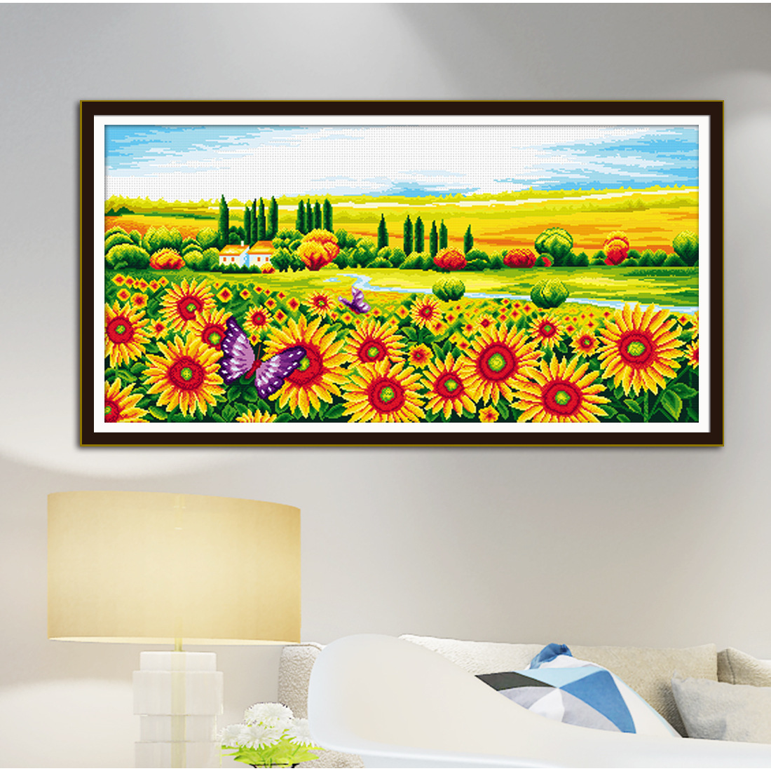 2025 新しい手作りクロスステッチ風景画ひまわりマナーや家庭の装飾リビングルーム玄関背景壁掛け絵画