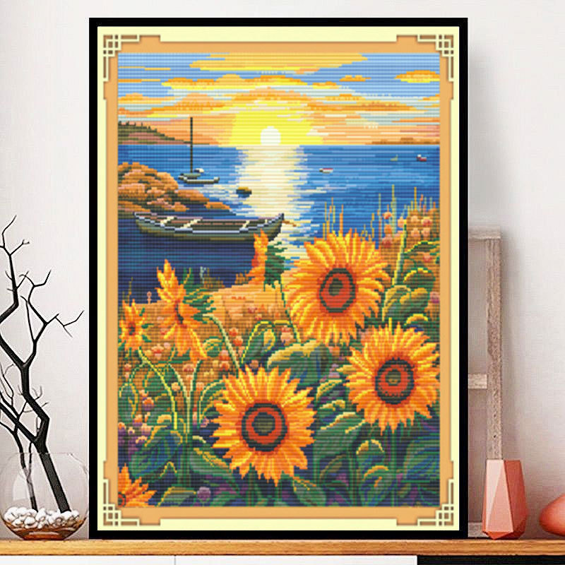 海辺のひまわり十字刺繍2025新型糸刺繍客間寝室レストランは刺繍の小さな手刺繍花卉でいっぱいである