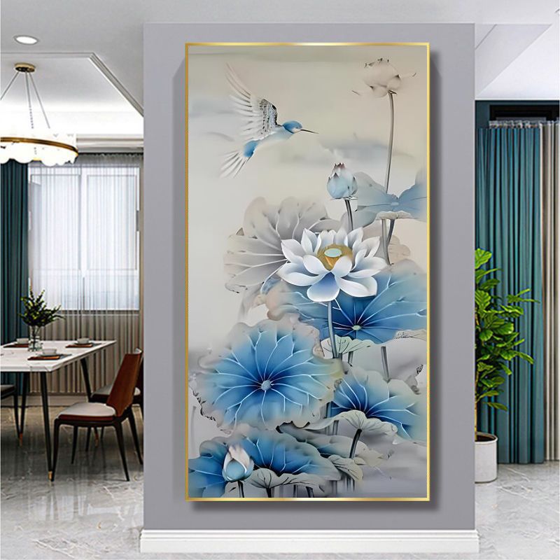 ハスの花の翠鳥図の十字の刺繍2025の新型の線は客間の縦版の玄関の書斎を刺繍します。
