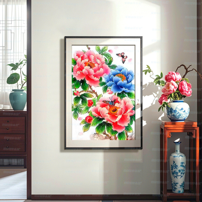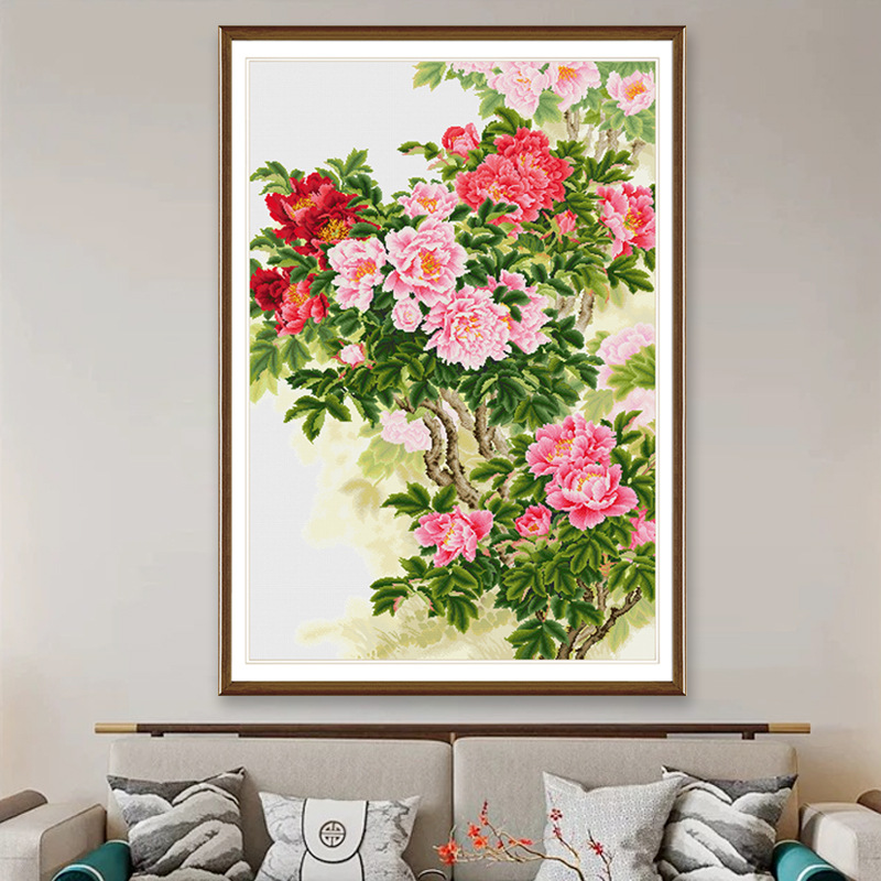 工場直販ドロップシッピング春クロスステッチ中国風玄関牡丹リビングルーム縦型書斎手作り自己刺繍