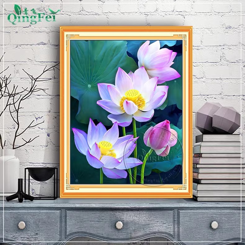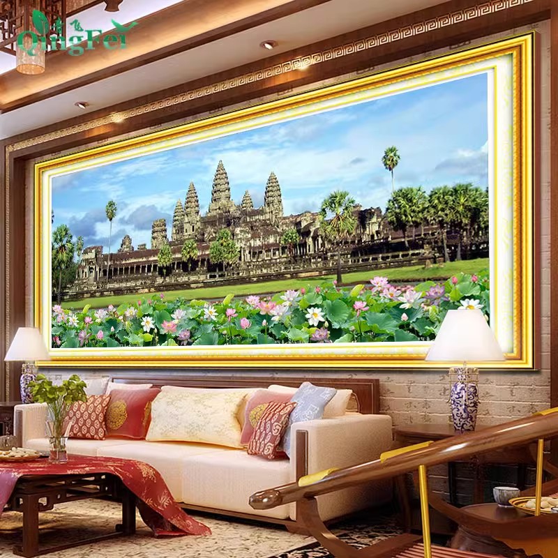 青飛精確印布呉哥呉哥王朝十字刺繍ヨーロッパ風装飾画ハスの花風景建築物画