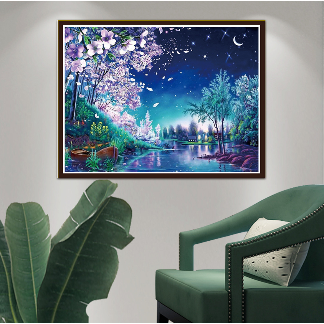 十字の桜の星空の客間の小幅な風景画の寝室は自分で手作りのレストランの玄関の装飾画を刺繍します。