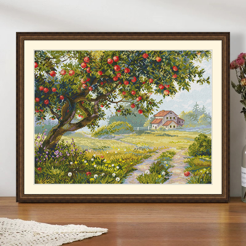 メーカー直販は春の十字刺繍の新しい糸刺繍がリビングルームの小さな風景リンゴの木の手に満ちている